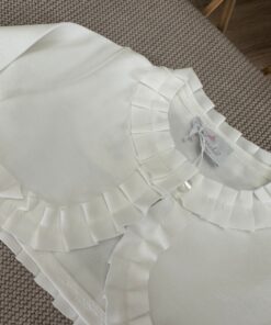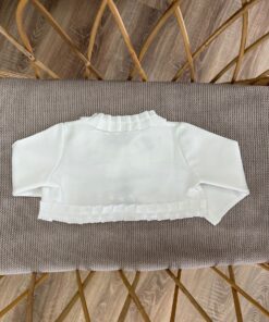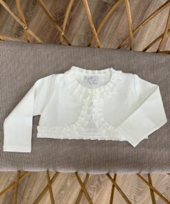 Cardigan colore bianco con rouche e chiusura bottoncino