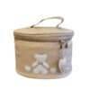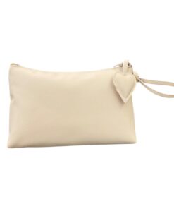 Beauty artigianale in ecopelle colore beige con ricamo cuoricini e orsetto colore bianco, chiusura con zip e pendente cuoricino
