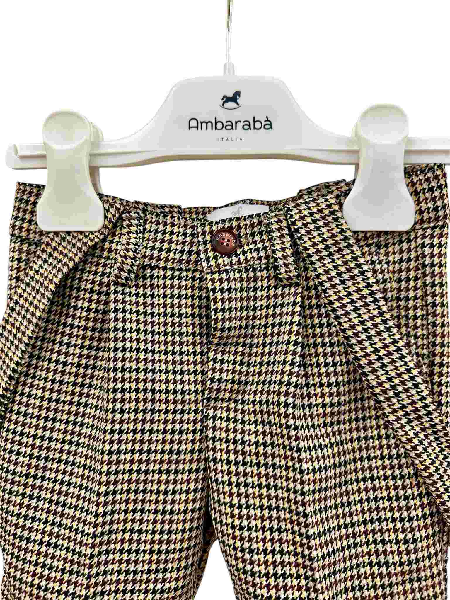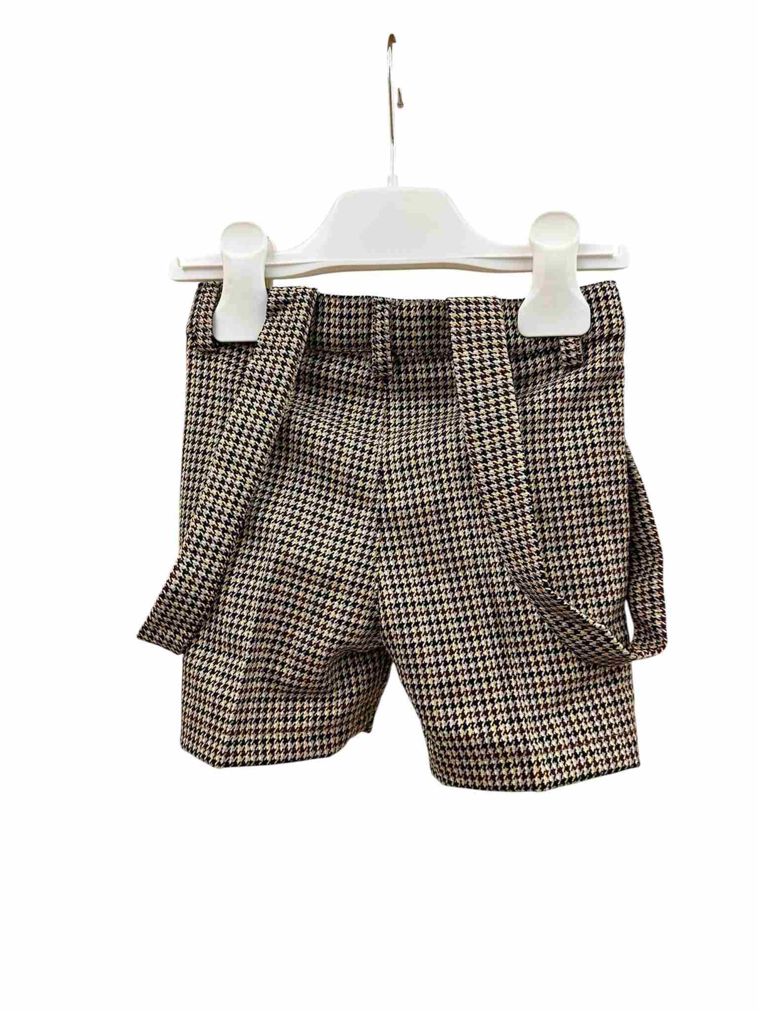 Bermuda fantasia pied de poule ambarabà mix colori (nero, bordeaux, beige, bianco, giallo),con tasche laterali, passanti e bretelle e chiusura con bottone.