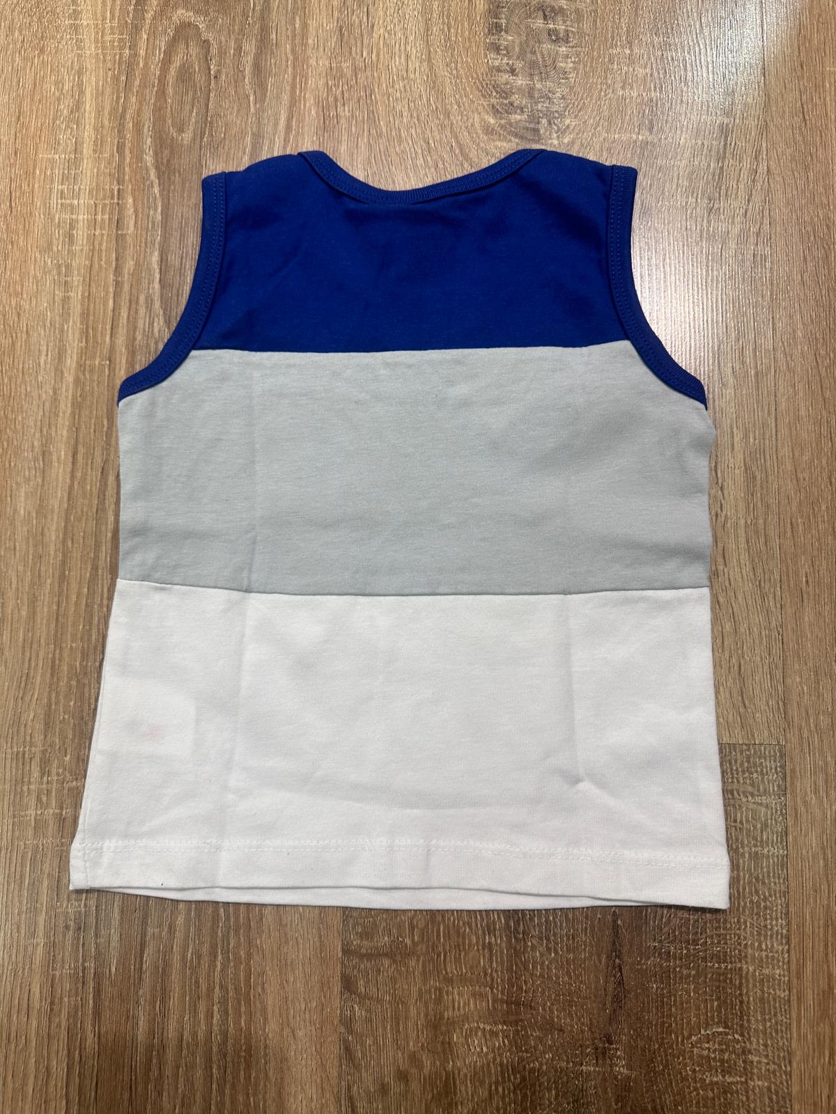 Canotta Birba, in cotone, blu,grigia e bianca con stampa Super Hero