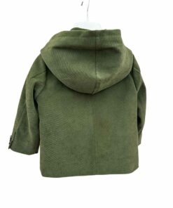 Cappottino Ambarabà colore verde in velluto, con cappuccio removibile e chiusura bottoncini.