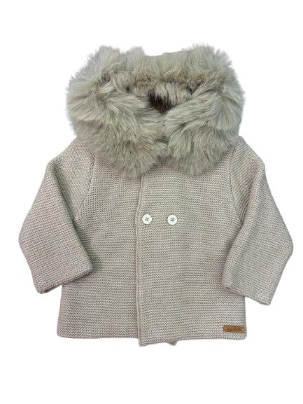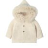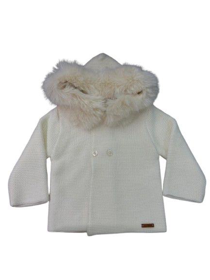 cappotto con cappuccio in misto lana panna abbottonatura sulla parte anteriore con quattro bottoni, pelliccia sul cappuccio removibile