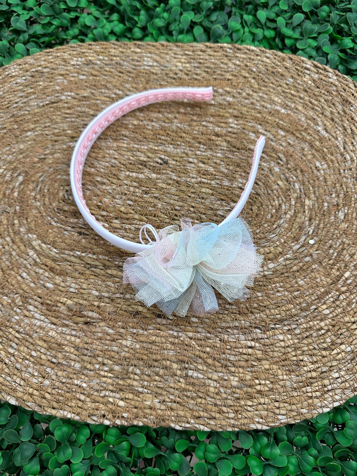 Cerchietto bimba, rosa con tulle glitterato multicolor