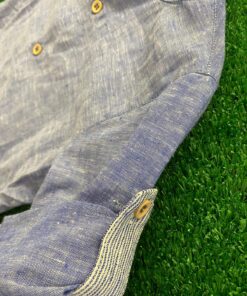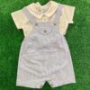 Completo blu denim, bermuda con bretelle e camicia alla coreana