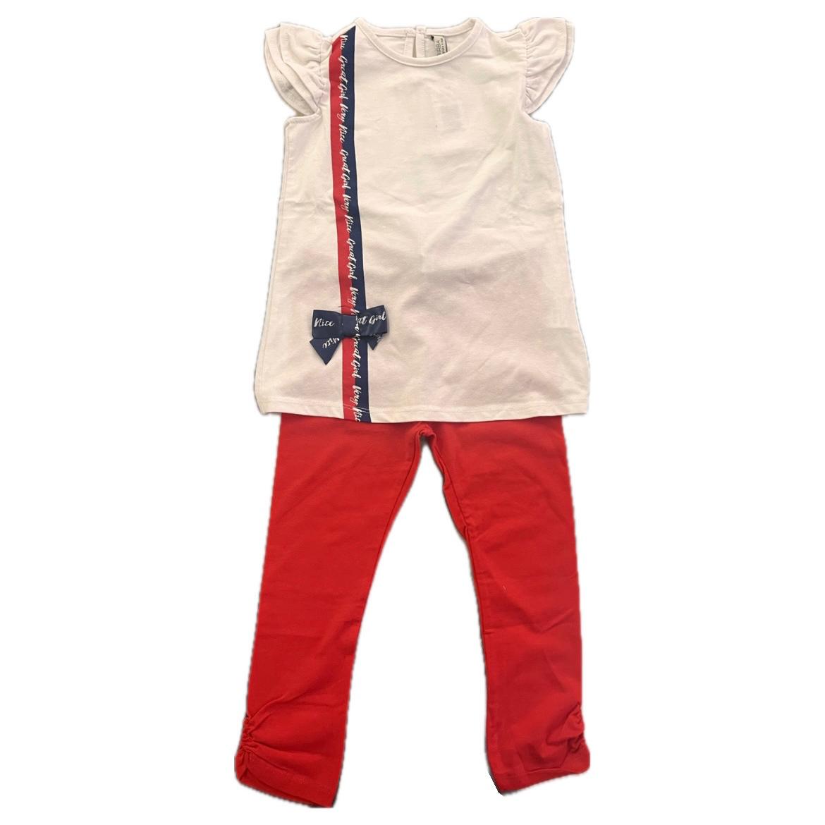 Completo t-shirt bianca con fiocco e leggins rosso, Birba