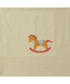 Copertina 100% cotone colore beige con ricamo cavalluccio a dondolo