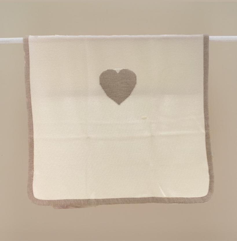 Copertina 100% pura lana, colore paanna con cuoricino e bordo beige