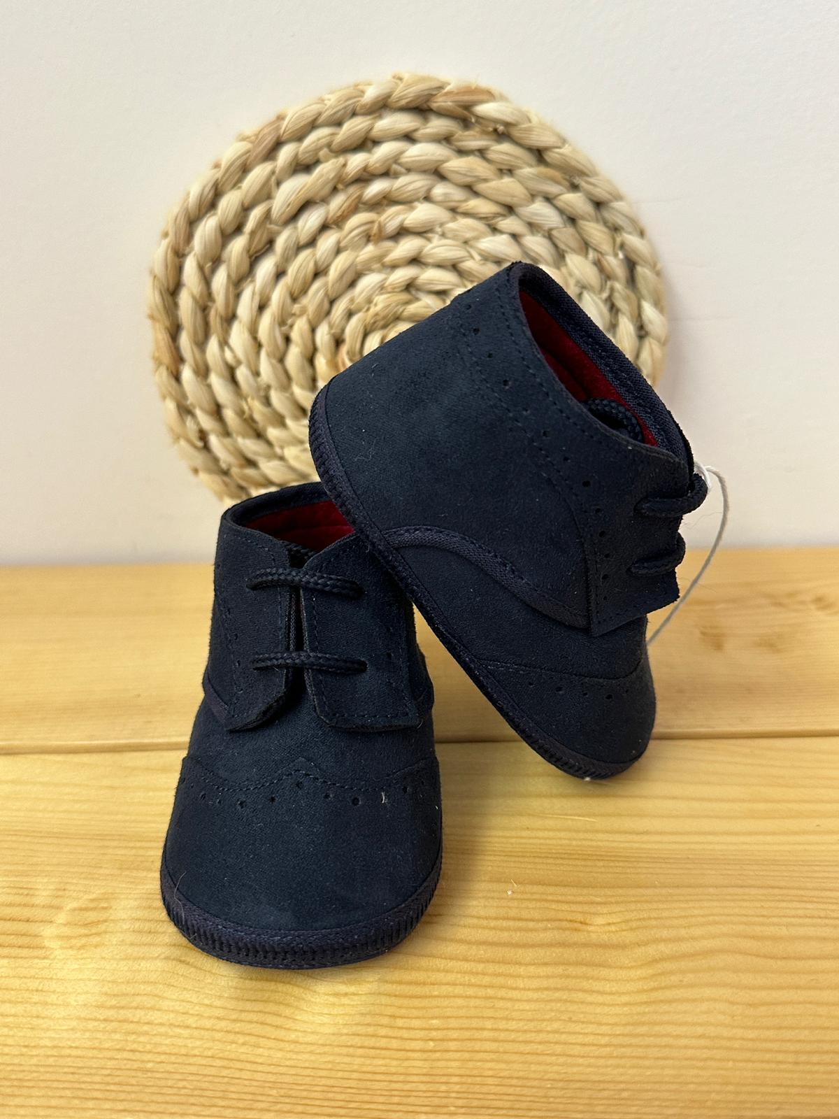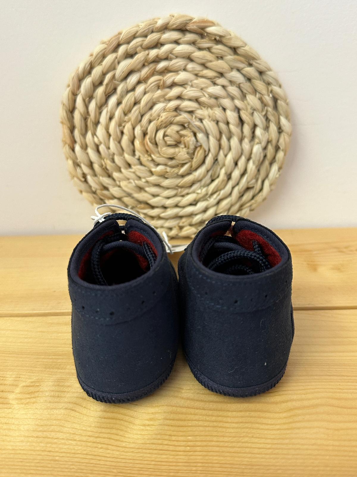 Inglesina blu, con lacci, ricamata con dei puntini.