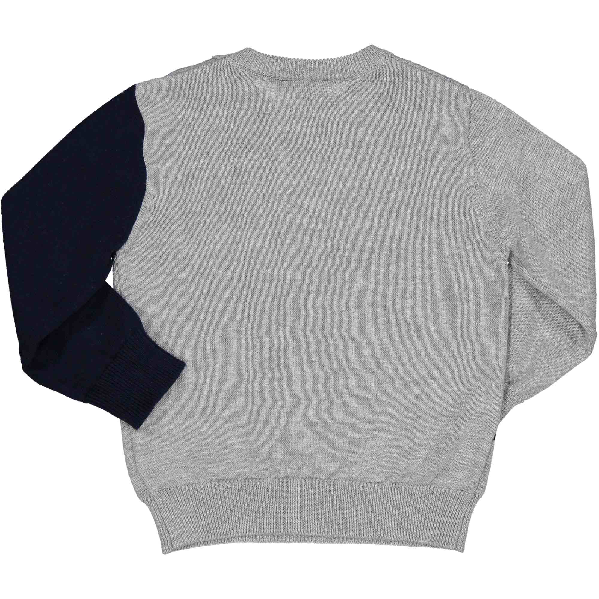 Maglioncino in cotone con simpatico dinosauro, blu e grigio con aculei celesti