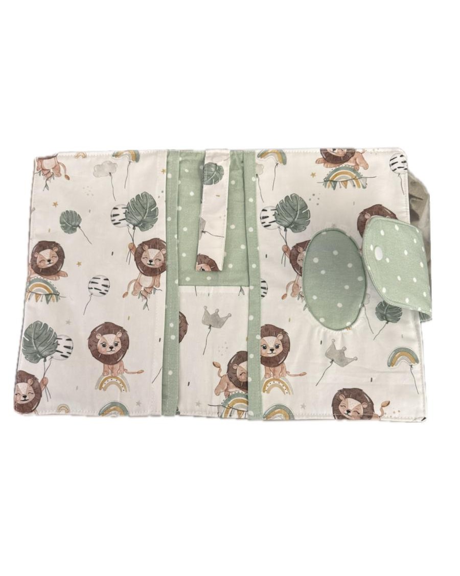 Porta pannolini e salviettine fantasia leone, foglie e palloncini. Prodotto artigianale, ottimo per i vari spostamenti, organizer porta cambio, porta ciuccio e porta crema