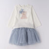 Completo tuta jogging: felpa con ricamo peluche con dettagli celesti e pantalone a zampa in caldo cotone felpato