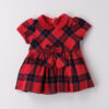 Tutina in ciniglia, rossa con colletto bianco, con ricamo sul davanti: renna con pacco regalo e scritta “il mio primo natale”