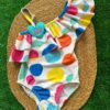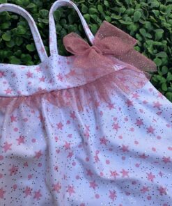 Vestito mare Sardon, fondo bianco con stelline e fiocco in tulle rosa antico glitterato