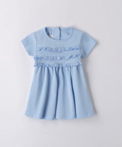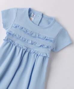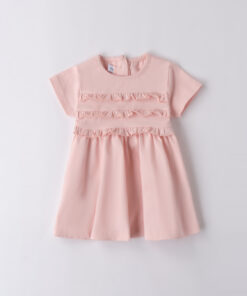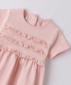 Vestito a mezza manica con ruches sulla parte superiore e chiusura bottoncini sulla parte posteriore